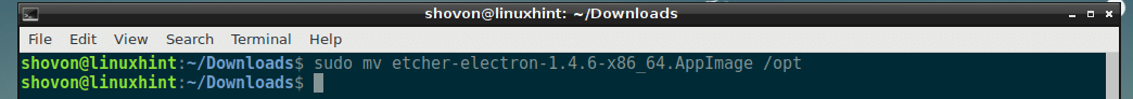 Now, move the AppImage file to the /opt directory with the following command: