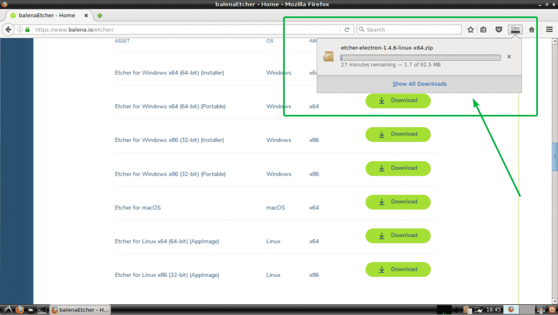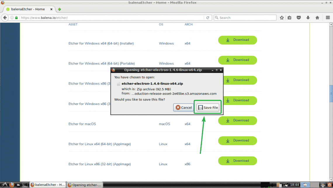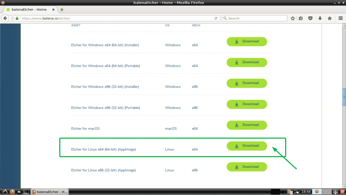 Downloading Etcher for Linux: