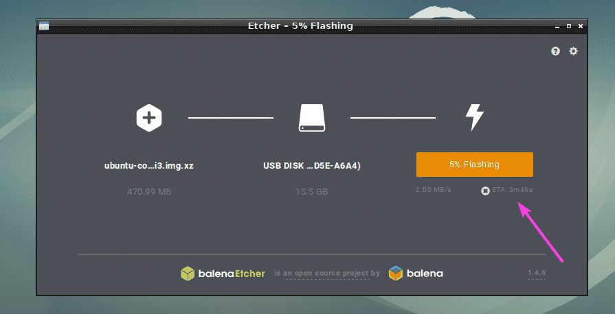 Etcher should start flashing your microSD card or USB storage device.
