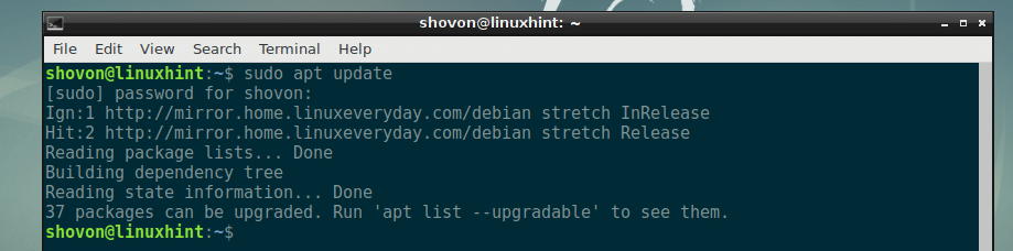 First, update the package repository of your Ubuntu or Debian machine with the following command: