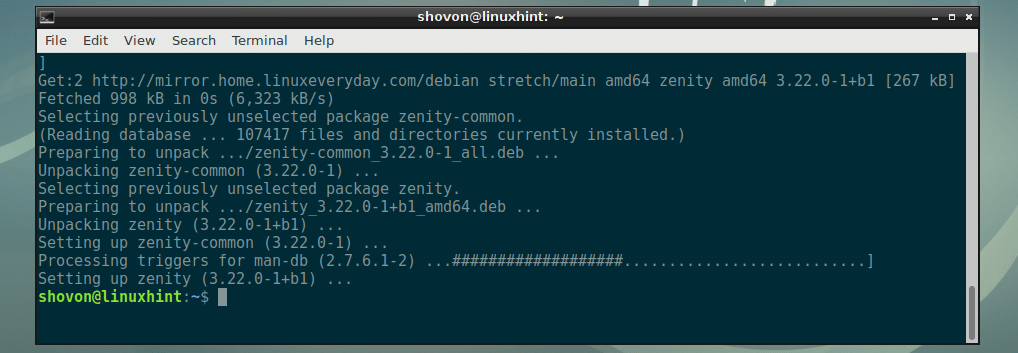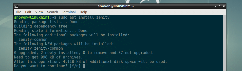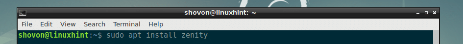Now, install zenity with the following command: