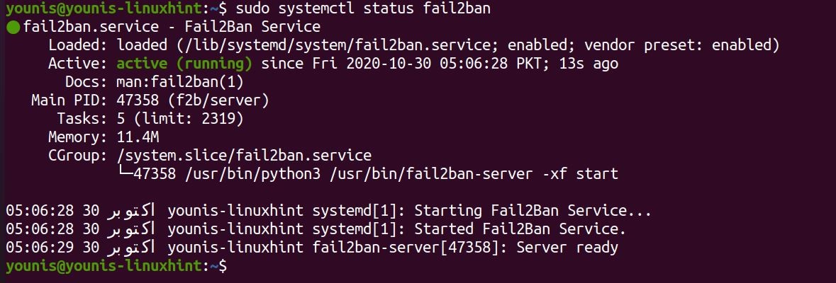If the Active line in the output contains active (running), you’re all good. Let’s move on and see how to configure Fail2ban.