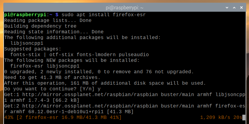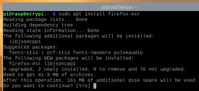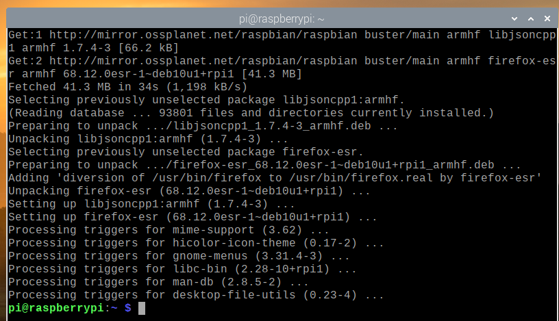 To install Firefox on your Raspberry Pi OS, run the following command: