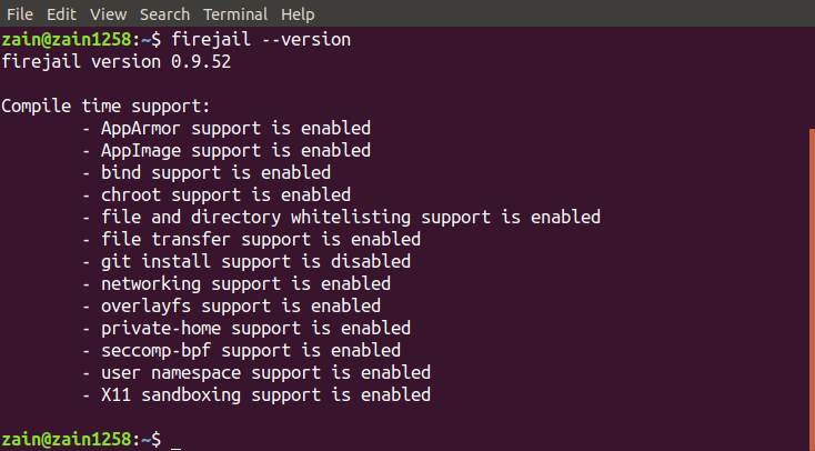 After installing Firejail, you can check whether it is installed on your system or not by running following command in the terminal
