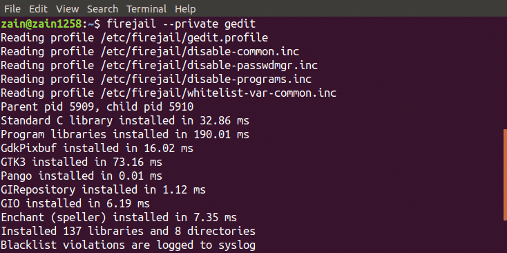 Now your profile is ready to use. Type the following command in the terminal to run the untrusted application in limited environment