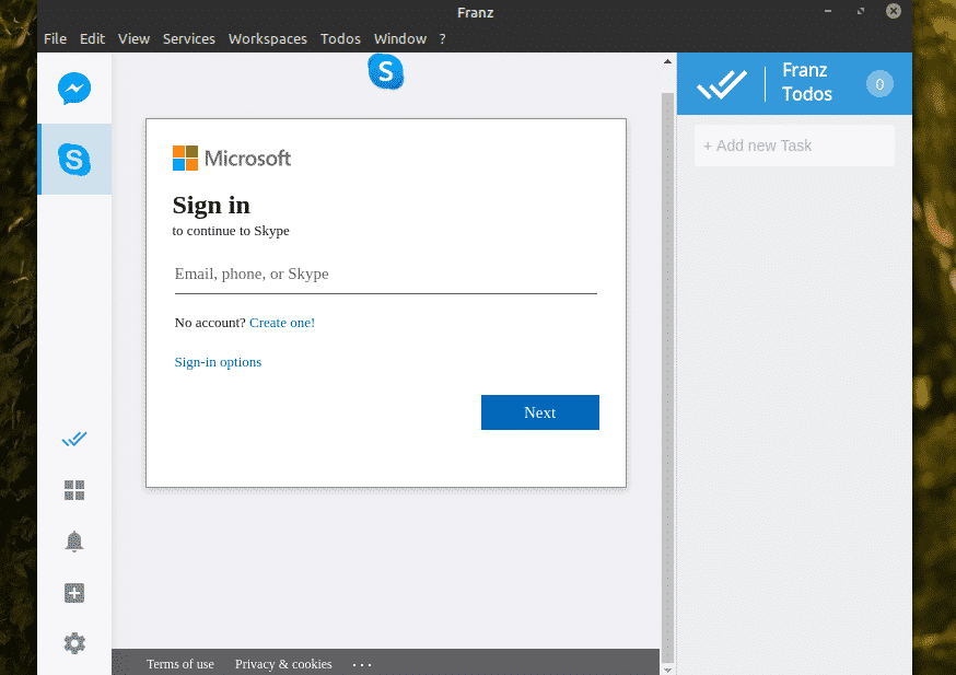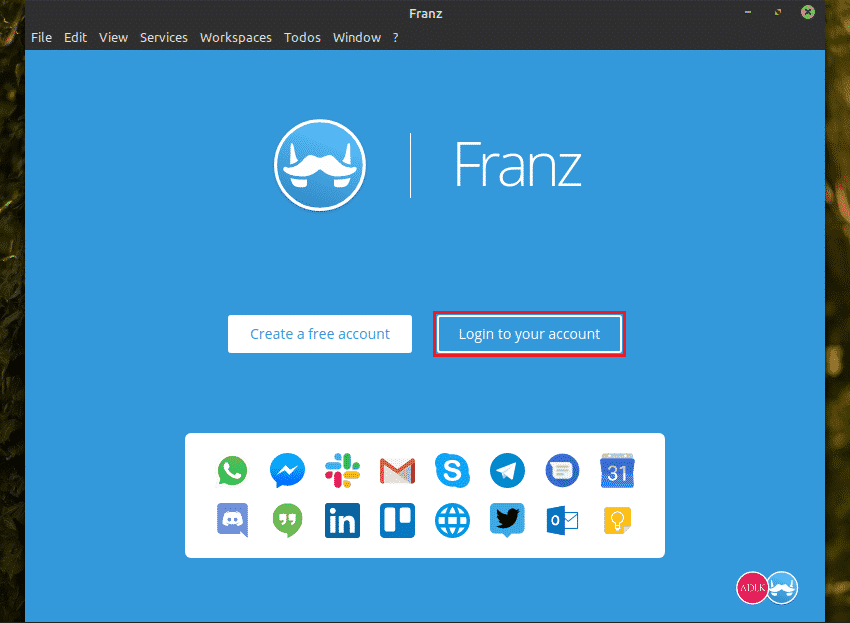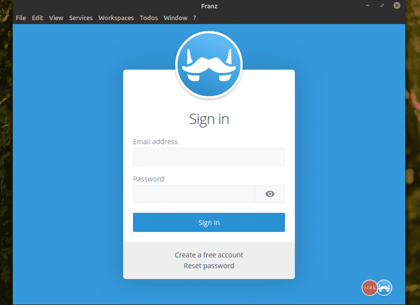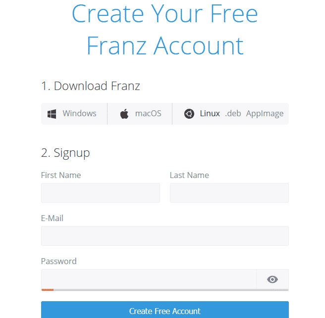 The installation of the Franz application is complete. Now, it’s time to configure it. Using Franz requires having an account with Franz. Sign up at Franz.