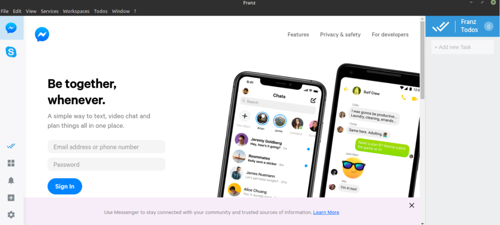 Franz is a cross-platform app. It’s available for Windows, Linux, and MacOS. As for the Linux platform, Franz is officially available as a DEB and an AppImage. Linux Mint, as it’s based on Ubuntu, can handle the DEB package, no problem. Moreover, it’s also available as a flatpak. As you can see, there are multiple methods of enjoying Franz.
