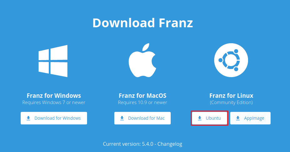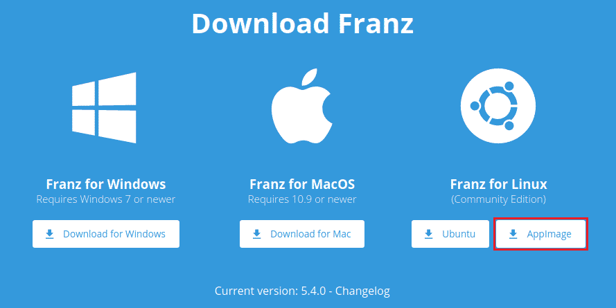 First, we need to grab the official DEB package. Go to the Franz download section.