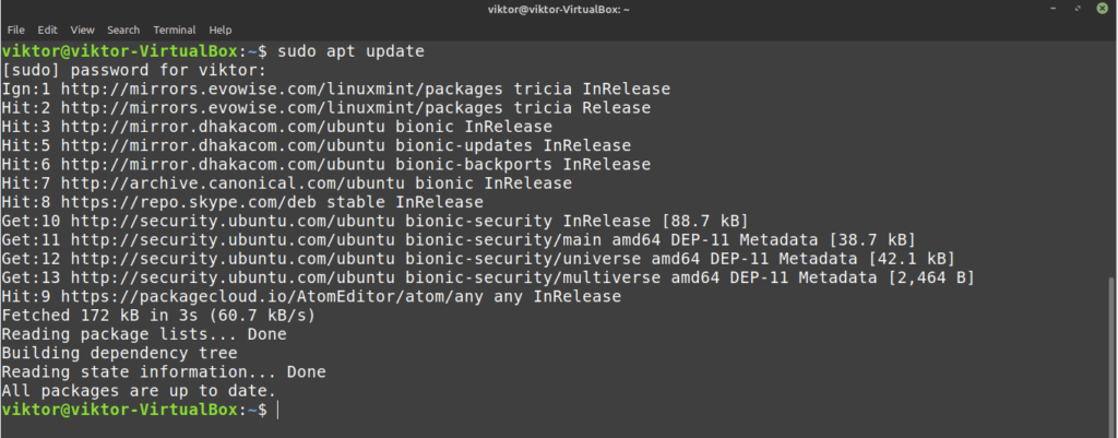 Download complete? Now, we’ll be installing it using APT. Launch the terminal and get started with the installation. First, update the APT cache.