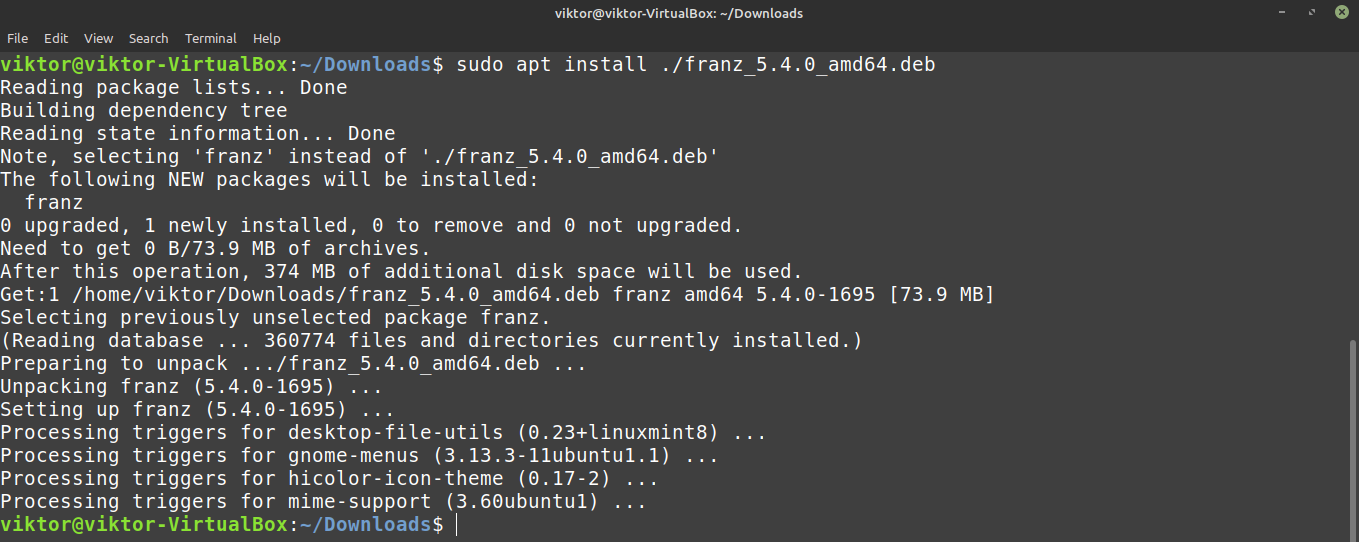 Install Franz DEB package