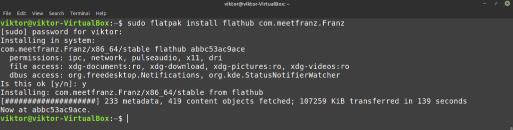 In the case of Linux Mint, flatpak is supported by default, so no need for any additional tweaking to the system. We can directly perform Franz installation. However, if you uninstalled flatpak at any point, then follow the following steps to install it right away.