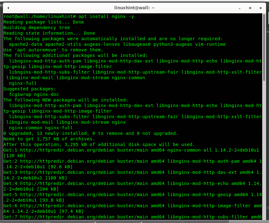 To begin installing Nginx on Debian 10 Buster, previous Debian versions or based Linux distributions run: