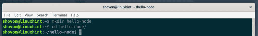 First, make a new project directory hello-node/ and navigate to the project directory with the following commands: