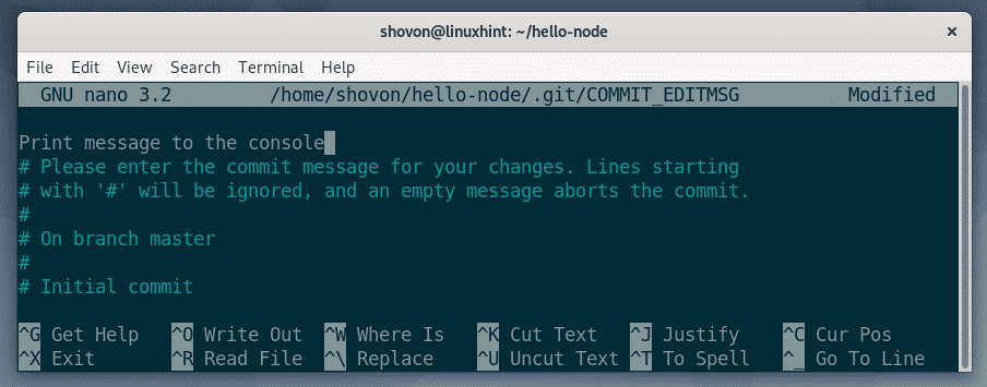 Once you’ve written the commit message, press <Ctrl> + X followed by Y and <Enter> to save the file.
