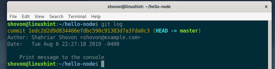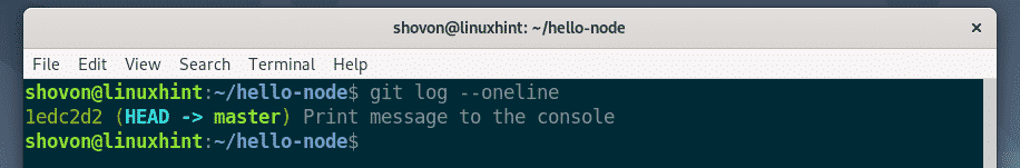 As you can see, the commit I’ve added is listed here. Each commit has its own hash and the hash is unique throughout the project. In this particular commit, the hash is 1edc2d2. This is the short form of the hash. It is enough to uniquely identify each commits.