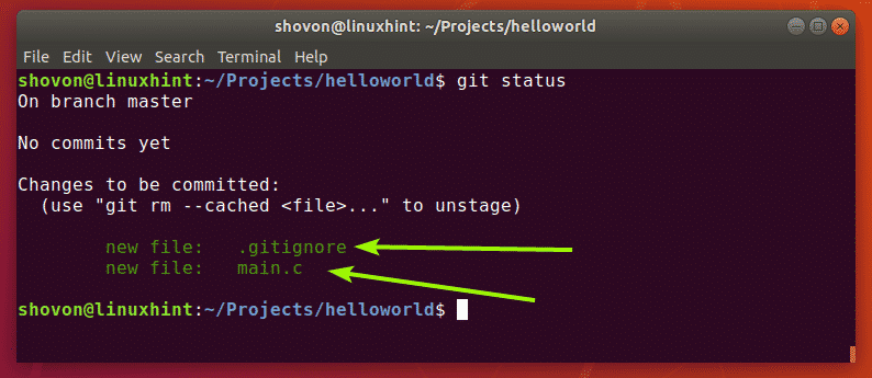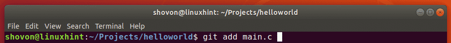 As you can see, the file main.c is now green. It means Git is now tracking the file and it’s ready to be committed.