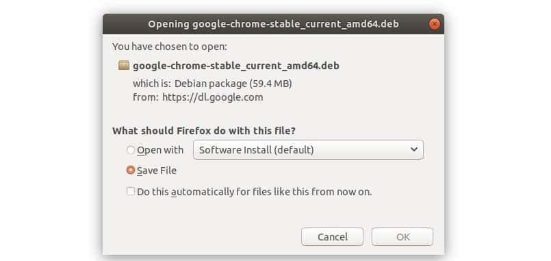 When you click on download link, prompt will appear in your browser window as shown in below screenshot asking the file type you want to download. You need to select 64 bit .deb file to install it on Ubuntu.