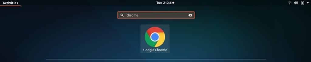 Once that’s finished you are done with Google Chrome installation, now head over to app tray and search for Chrome as shown in screenshot below. You can see Google Chrome icon there ready to launch.