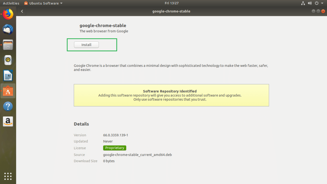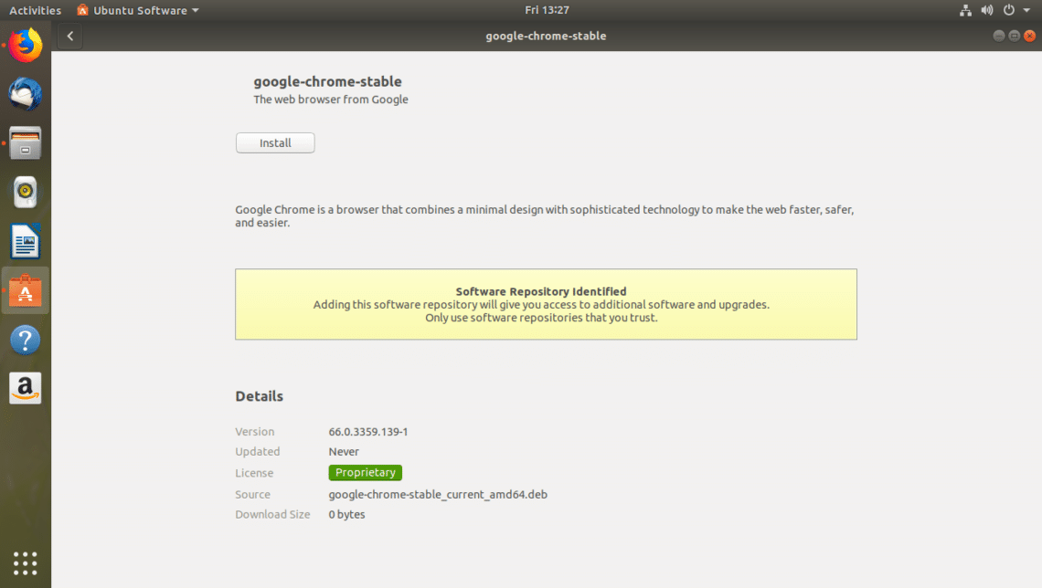 Now you can install Google Chrome using the Ubuntu Software Center of using the Terminal (by running some simple commands). I will show you both ways as the Ubuntu Software Center may not work at times. It’s always good to have a backup plan.