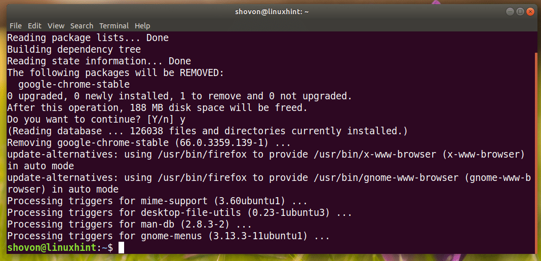 In this section, I will show you how to uninstall Google Chrome from Ubuntu 18.04 LTS.
