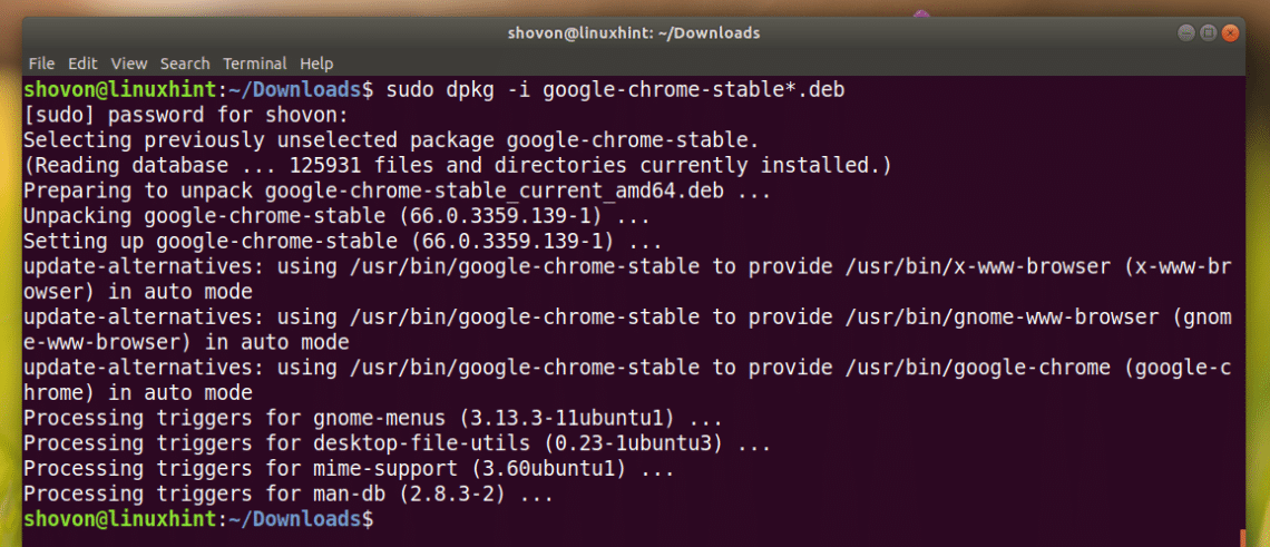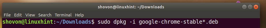 Now navigate to the ~/Downloads directory where you saved the Google Chrome installer .deb file with the following command: