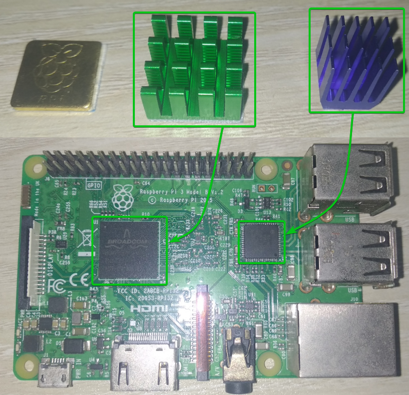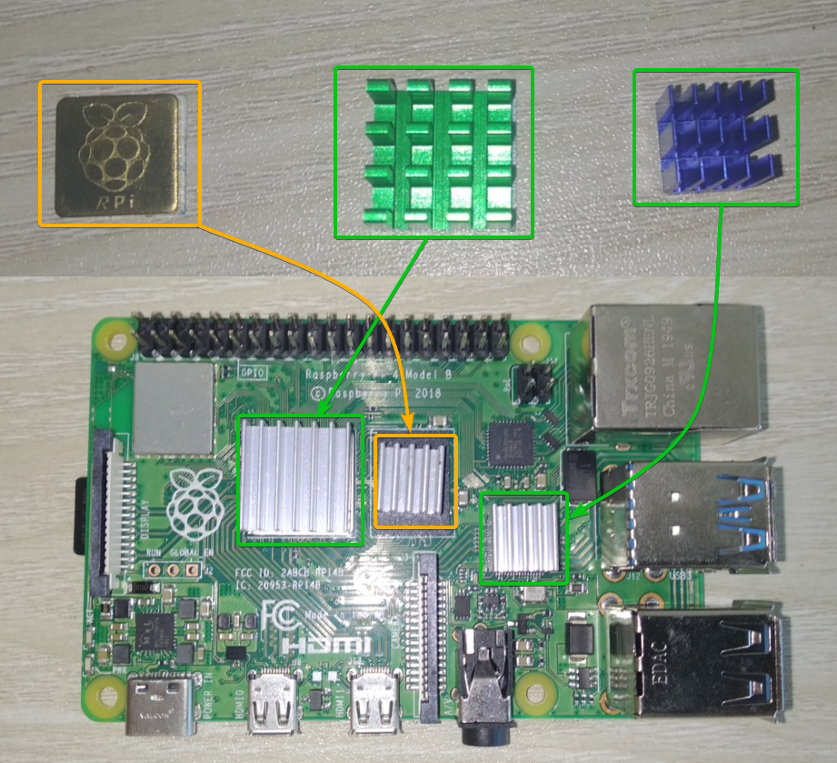 If you have a Raspberry Pi 4, then the 3 pieces of heat sinks should be placed on the 3 chips, as shown in the image below.