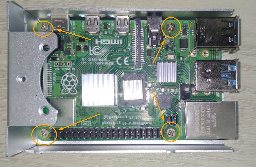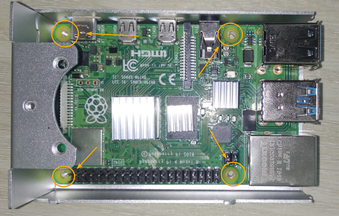 Your Raspberry Pi should also have 4 holes in 4 of the sides, as you can see in the image below.