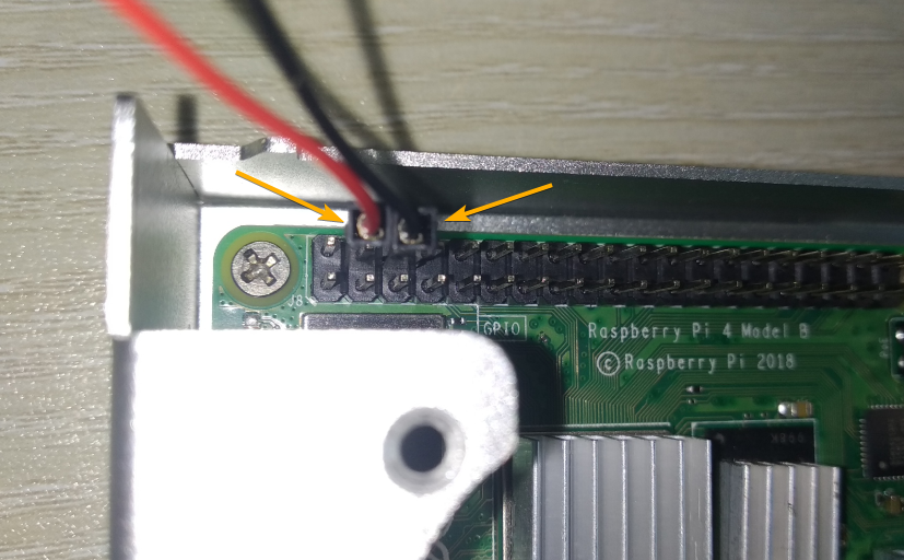 The RED wire should go to PIN 4 (5V – VCC), and the BLACK wire should go to PIN 6 (Ground – GND), as shown in the image below.