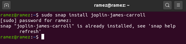 Joplin can easily be installed by using a snap version of it. Snaps are compressed packages that contain the entire application along with all its dependencies inside of it. This is quite useful as now there is no hassle of separately installing the dependencies. To install Joplin from the Snapcraft, simply run the following command into the terminal: