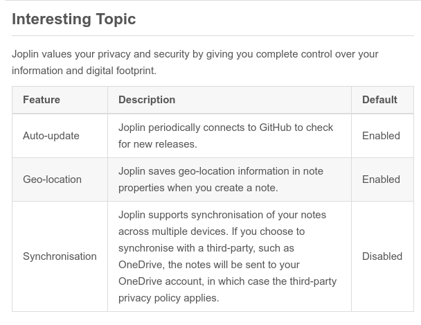 Joplin is an open-source & free note-taking application, bundled with plenty of features. It is available for both desktops and mobile phones as well as even having a command-line version of itself. Joplin is extremely powerful and can easily handle the organization and management of large sets of notes categorized into multiple notebooks. It also allows the searching of notes, adding tags to notes, and even importing and exporting of files into several data-formats such as Evernote export, PDF, HTML, etc. Coupled with this, Joplin further allows users to synchronize their accounts to cloud services like Dropbox, OneDrive, etc. that backs up its data and secures it. It even has a web clipper for both Firefox and Chrome, from which webpages can be saved as notes.