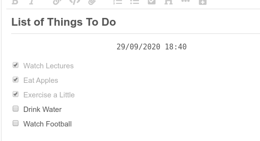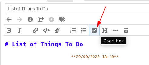 Next, to add the checkboxes, click on the button with the tick sign. You can add as many lists of items that you want.