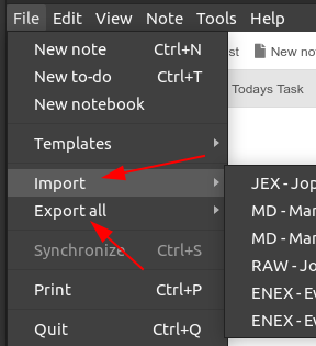You can also export all your notes as well as import them from other files including the Evernote Enex File. To do this, click on the File section and then choose the file format that you want to import or export.