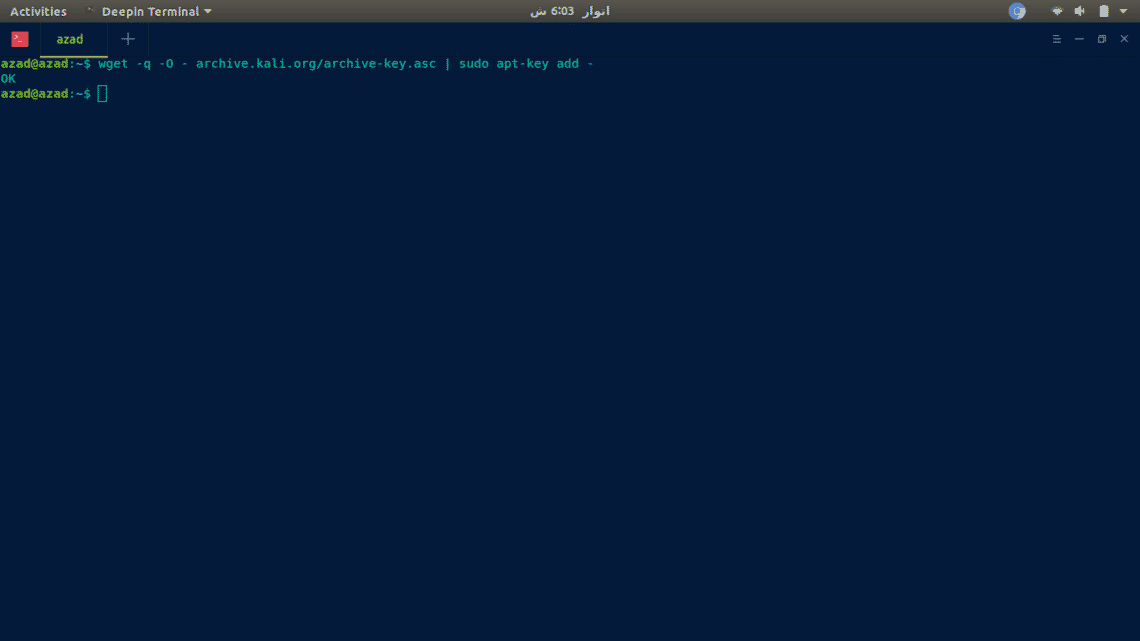 [email protected]:~$ wget -q -O - archive.kali.org/archive-key.asc | sudo apt-key add -