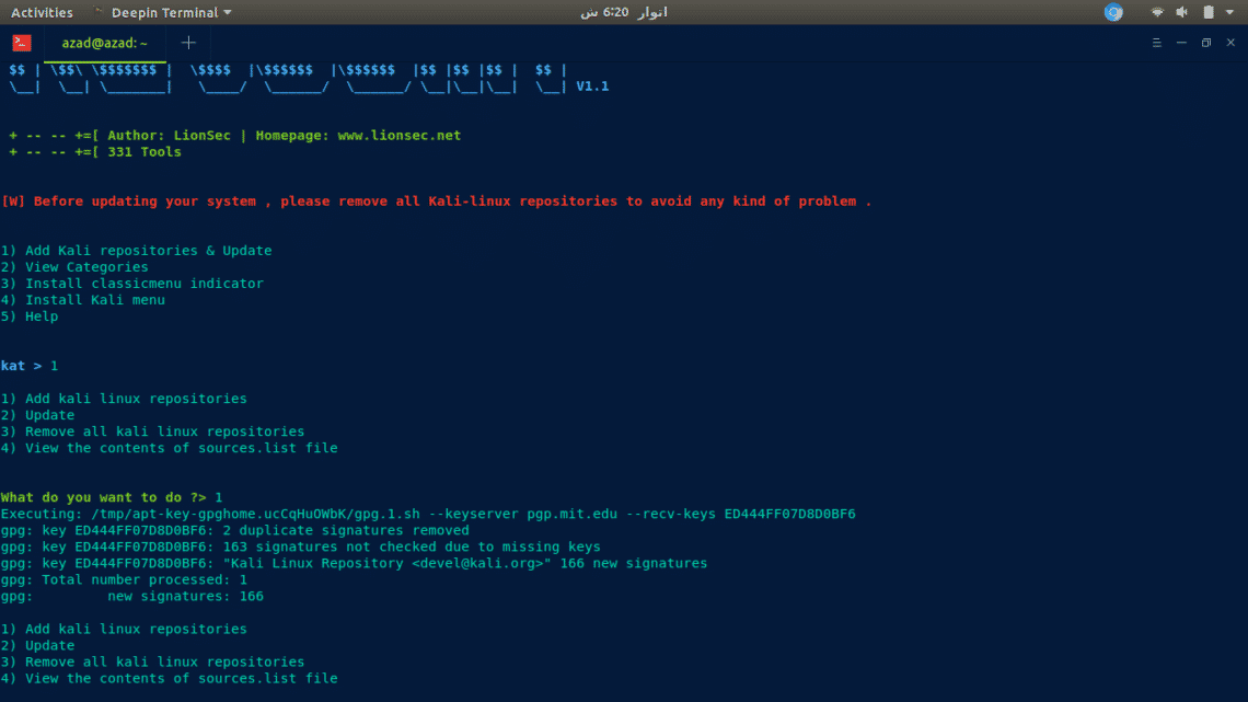 - After installing tools, make sure to remove all Kali repositories from your “sources.list” file before upgrading your system. Upgrading Ubuntu with Kali repositories can cause Kernel Panic.