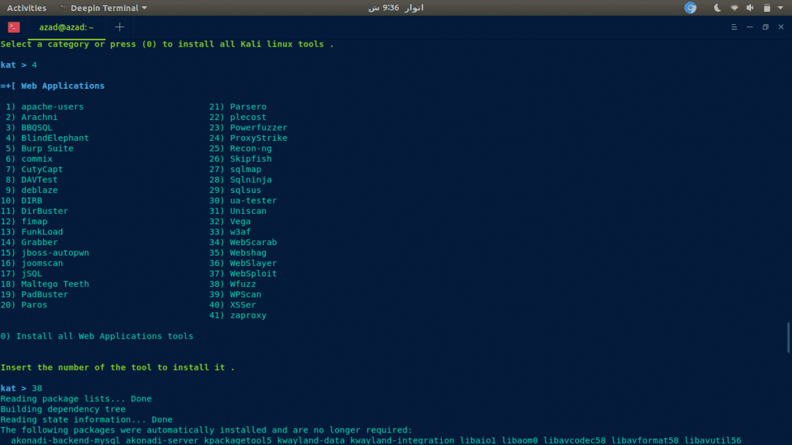 Now you can either browse the categories one by one or you can install all the tools by pressing “0”, here we’ll install a tools as a quick demo