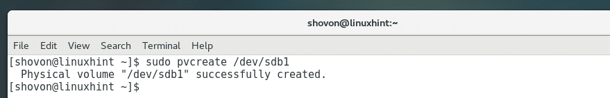 Now run the following command to add the disk /dev/sdb1 to the LVM as PV: