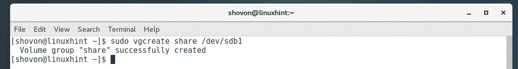 Run the following command to create VG share with PV /dev/sdb1: