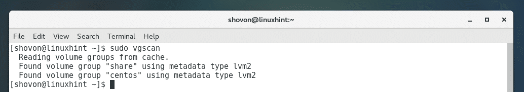 Now you can list all the VGs with the following command: