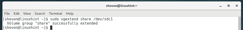 If you wish you can add more PV to an existing VG share with the following command: