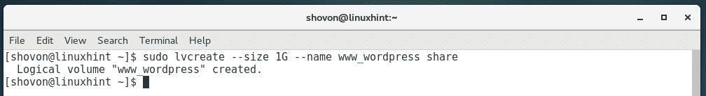 Let’s create another LV www_wordpress of size 1GB from VG share with the following command: