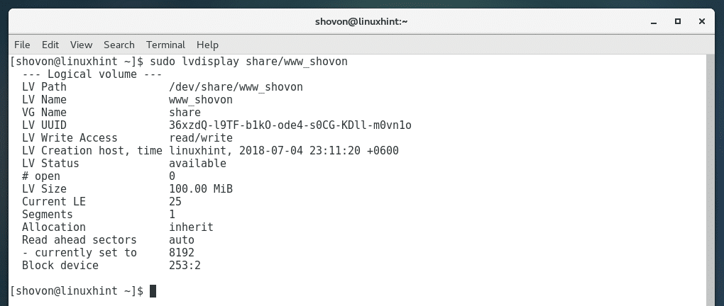 In my case, VG_NAME is share and LV_NAME is www_shovon