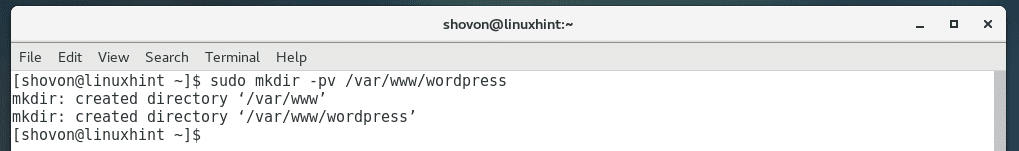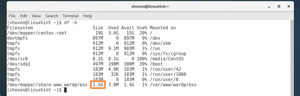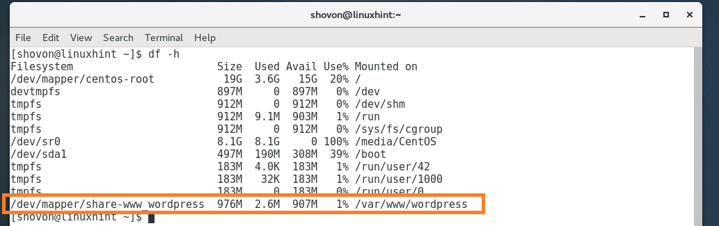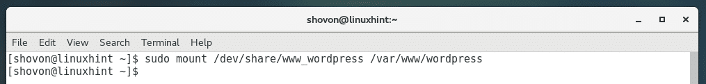 Now run the following command to create a mount point where you want to mount /dev/share/www_wordpress LV: