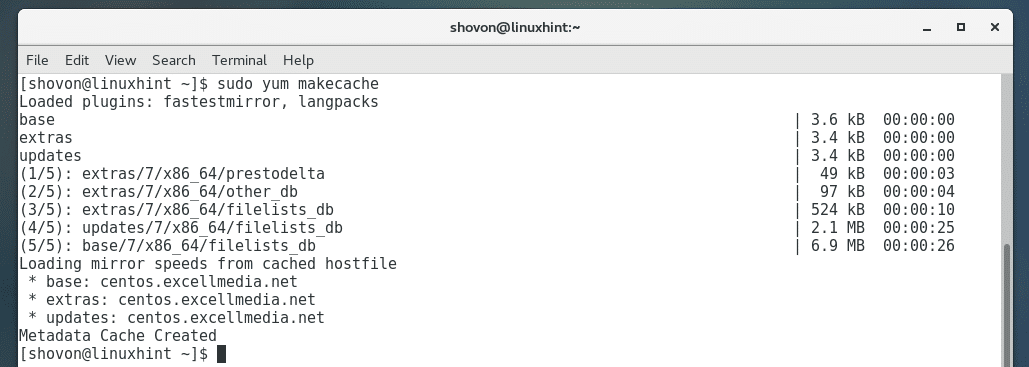 First update the YUM package repository cache with the following command: