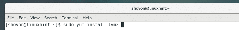 Run the following command to install LVM on CentOS 7: