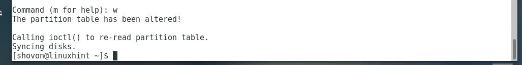 The partition should be created.