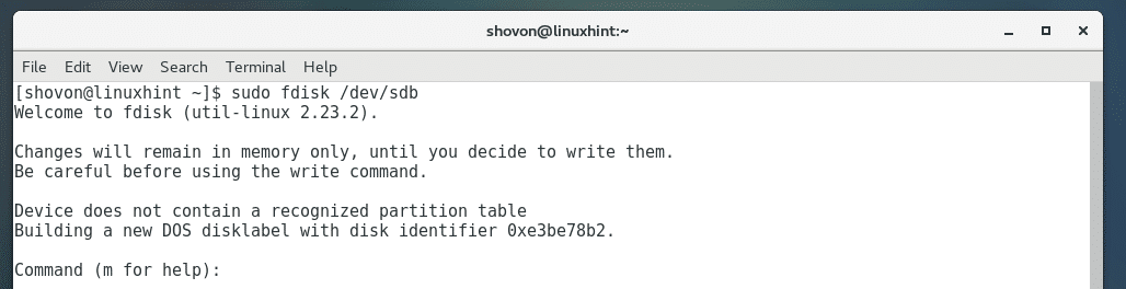 Use fdisk to create a single partition on the disk, let’s say /dev/sdb: