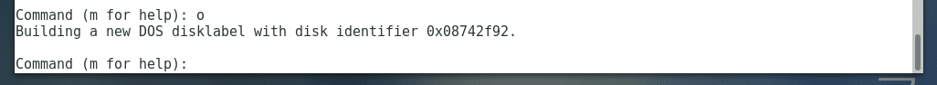 Now type in o and press <Enter> to create empty partition table on the disk.