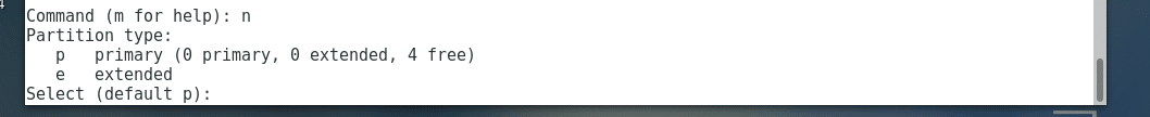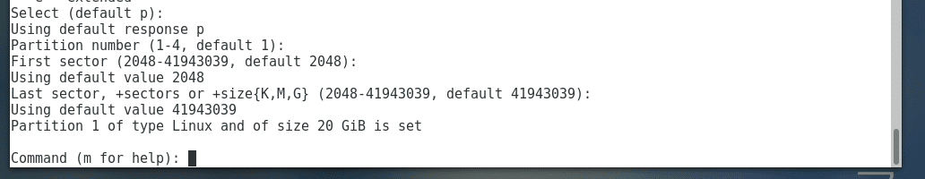 Now type in n and press <Enter> to create a new partition. Now keep pressing <Enter> to accept the defaults.