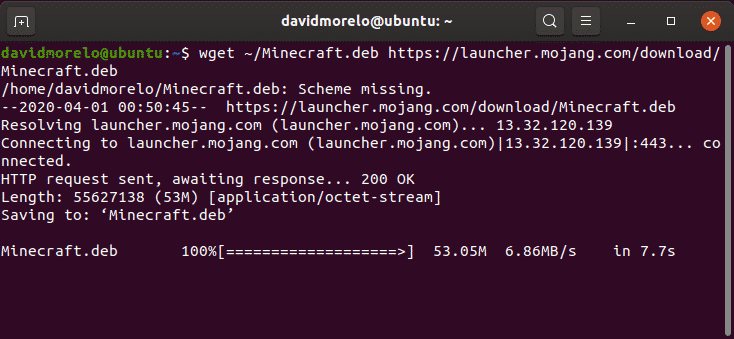 The first thing you need to do is download the Minecraft .DEB package from Minecraft’s official website. You can either open the alternative download page in your favorite web browser and download it from there, or you can use the following command and download the package to your home folder using wget: