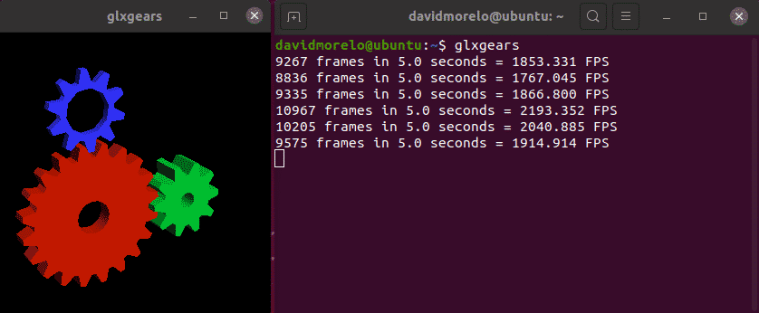 First, install the mesa-utils package (it should be in your distribution’s repositories) and then enter “glxgears” in the terminal. A new window with three spinning gears will appear, and you’ll be able to see the number of rendered frames in the terminal. Because glxgears requires very little processing power, any decently powerful Linux computer with working 3D acceleration should be able to render hundreds of frames every second.